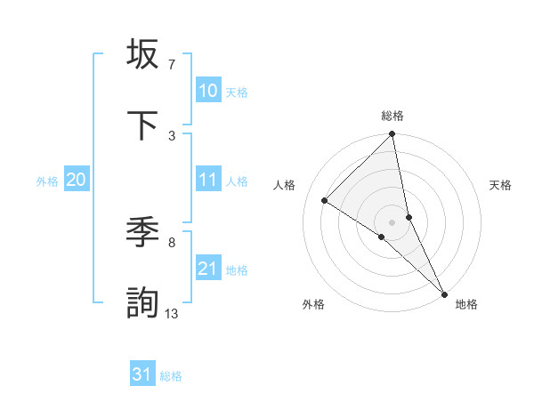 坂下 季詢さんの総格は31画の5点!