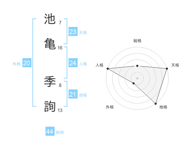 池亀 季詢さんの総格は44画の2点!