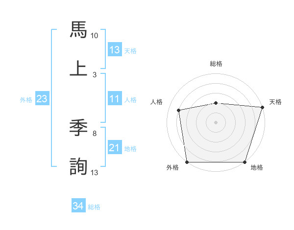 馬上 季詢さんの天格は13画の5点!