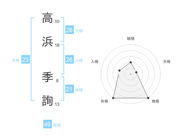 高浜 季詢さんを姓名の画数から五運を鑑定
