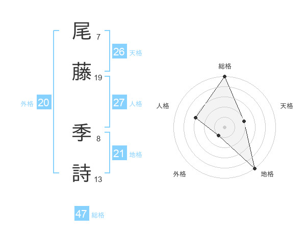 尾藤 季詩さんの外格は20画の1点!