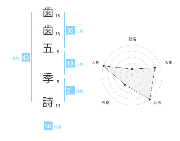 歯歯五 季詩さんを姓名の画数から五運を鑑定