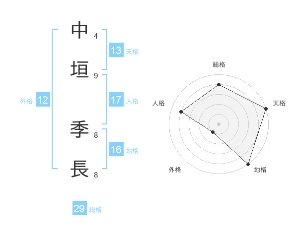 中垣 季長さんの天格は13画の5点!