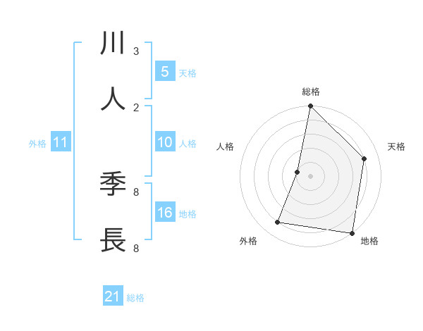 川人 季長さんの総格は21画の5点!