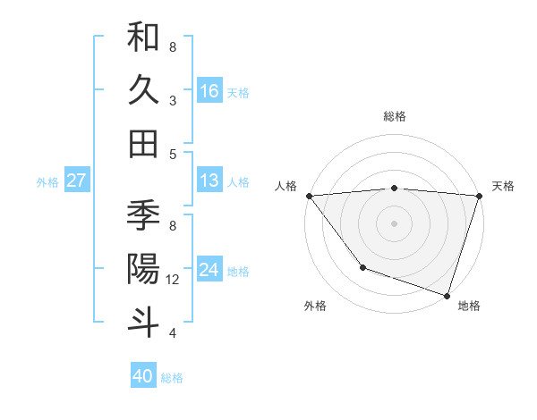 和久田 季陽斗さんを姓名の画数から五運を鑑定