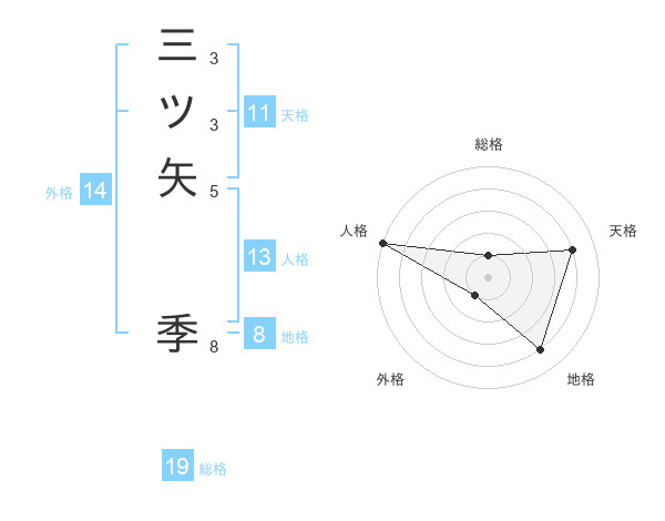 三ツ矢 季さんを姓名の画数から五運を鑑定