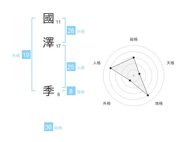國澤 季さんの地格は8画の4点!