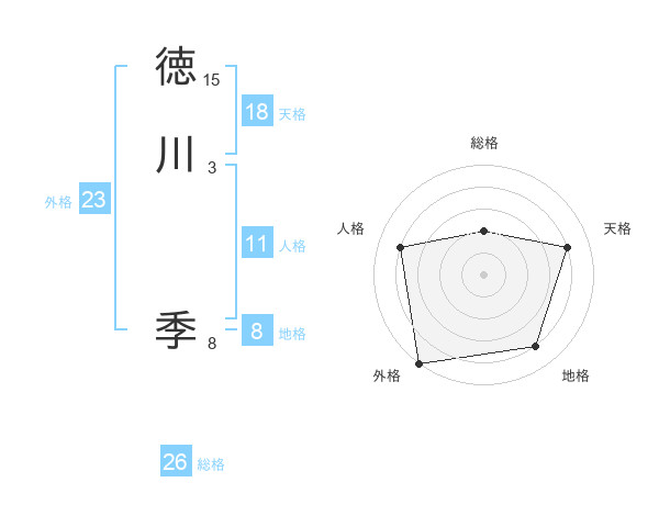 徳川 季さんの総格は26画の2点!