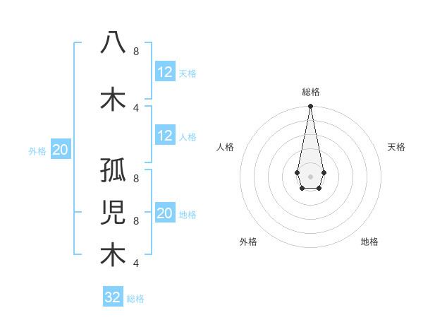 八木 孤児木さんの総格は32画の5点!