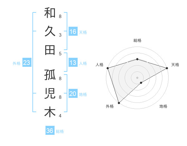 和久田 孤児木さんの外格は23画の5点!