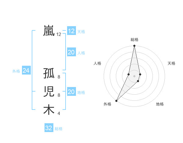 嵐 孤児木さんの総格は32画の5点!