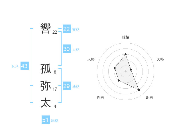 響 孤弥太さんを姓名の画数から五運を鑑定