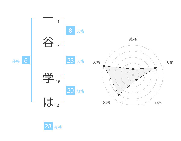 一谷 学はさんの地格は20画の1点!