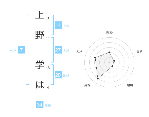上野 学はさんの外格は7画の4点!