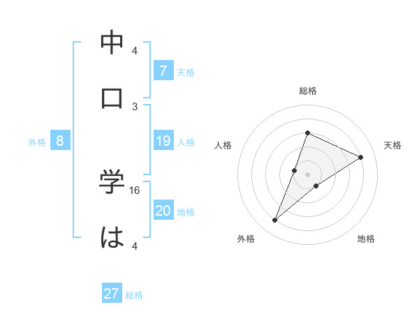 中口 学はさんの外格は8画の4点!