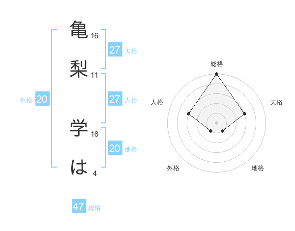 亀梨 学はさんの外格は20画の1点!