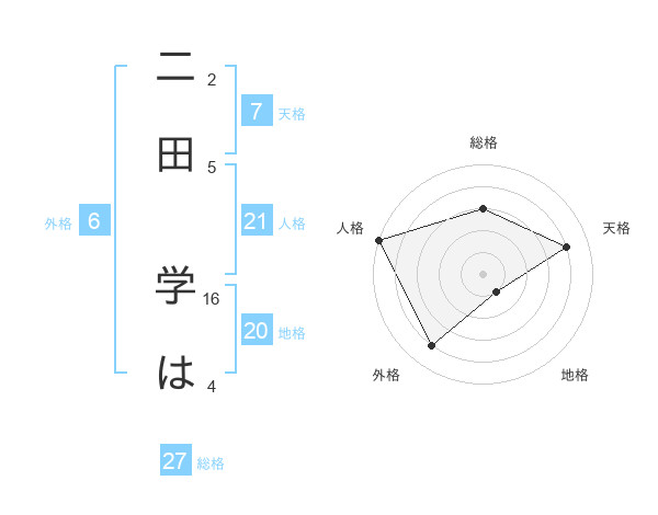 二田 学はさんの総格は27画の3点!