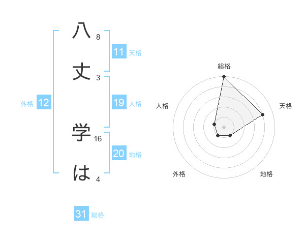 八丈 学はさんの地格は20画の1点!