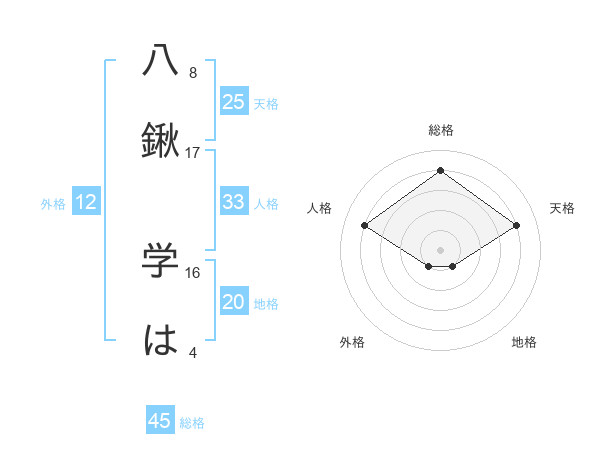 八鍬 学はさんの総格は45画の4点!