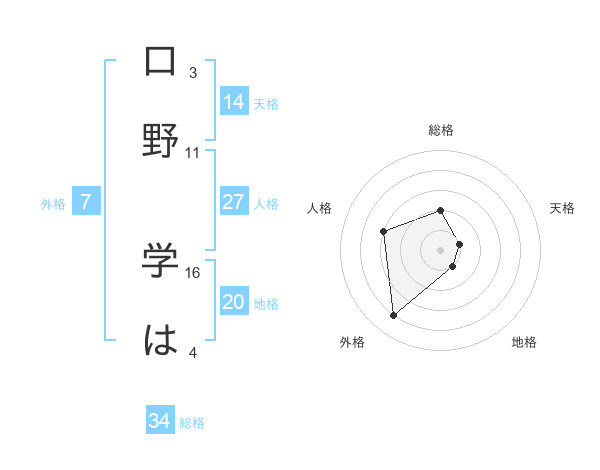 口野 学はさんの地格は20画の1点!