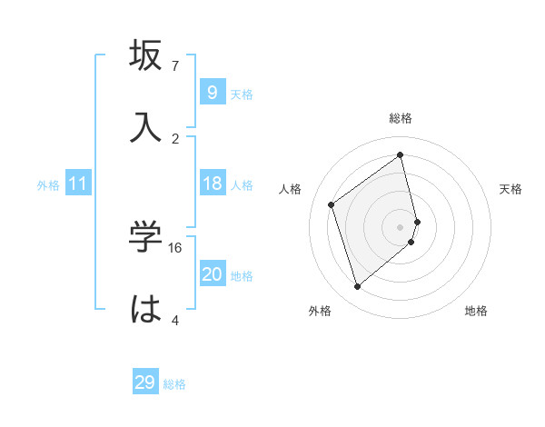坂入 学はさんの総格は29画の4点!