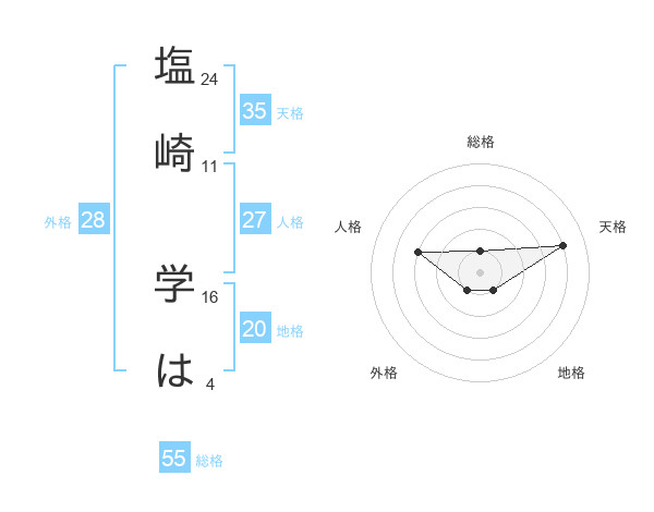 塩崎 学はさんの天格は35画の4点!