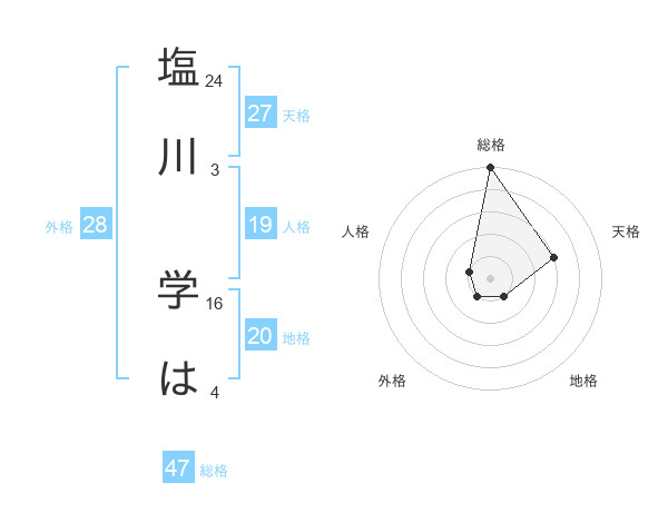 塩川 学はさんの総格は47画の5点!