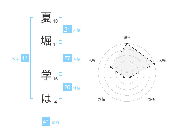 夏堀 学はさんの天格は21画の5点!