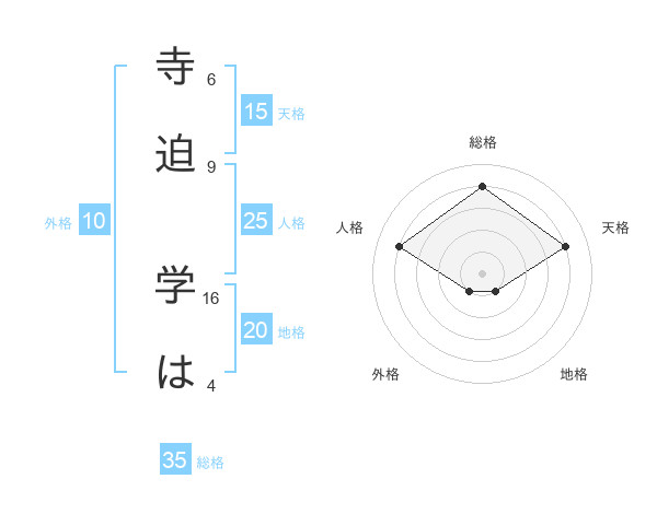 寺迫 学はさんを姓名の画数から五運を鑑定
