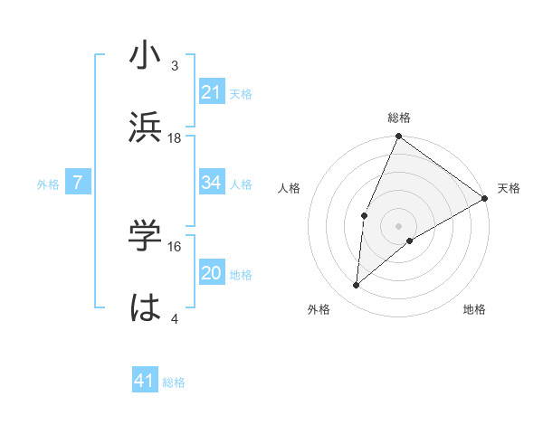 小浜 学はさんの天格は21画の5点!