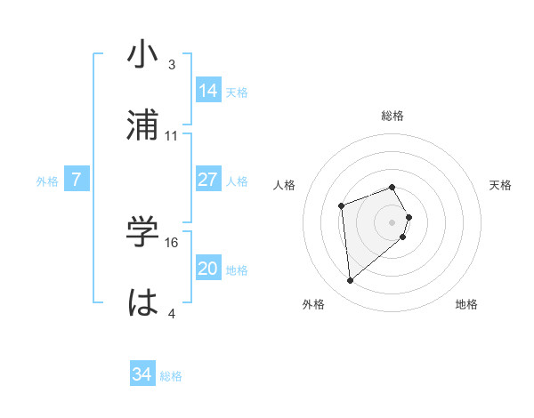 小浦 学はさんの総格は34画の2点!