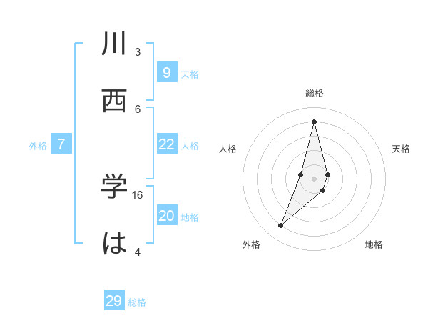 川西 学はさんの総格は29画の4点!