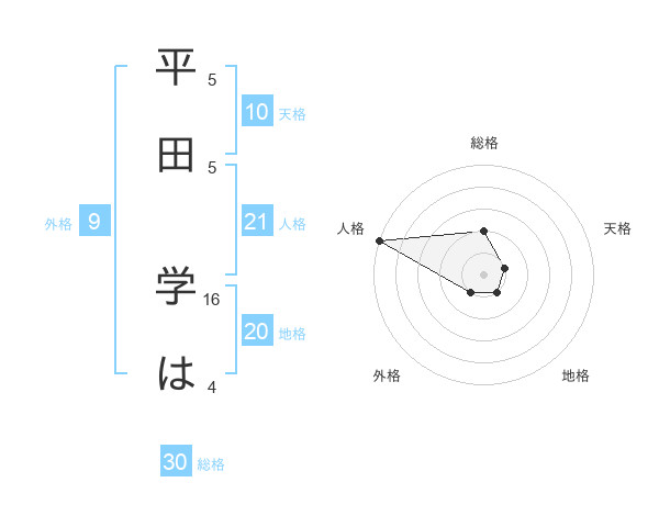 平田 学はさんの地格は20画の1点!