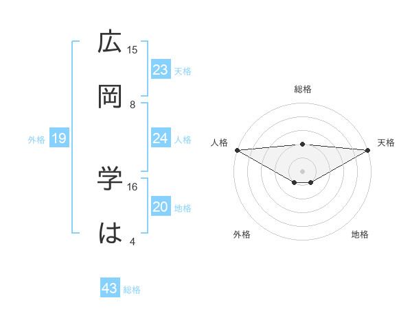 広岡 学はさんの外格は19画の1点!