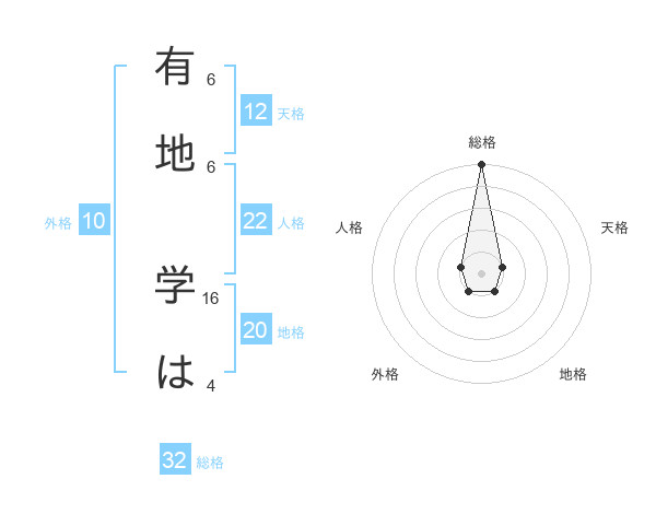 有地 学はさんの総格は32画の5点!
