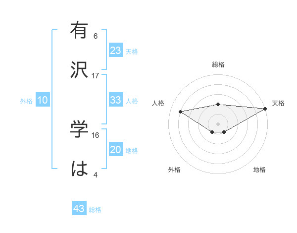 有沢 学はさんの天格は23画の5点!