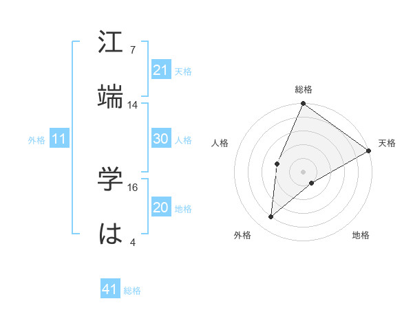 江端 学はさんの地格は20画の1点!