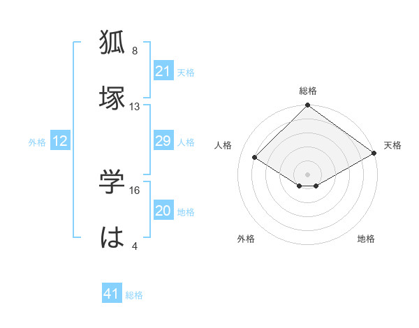 狐塚 学はさんを姓名の画数から五運を鑑定