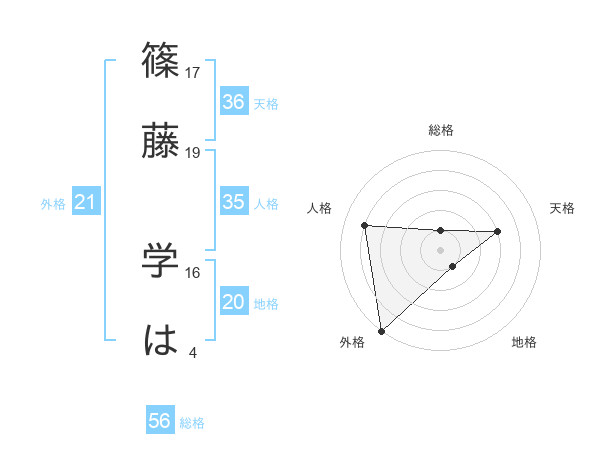 篠藤 学はさんの天格は36画の3点!