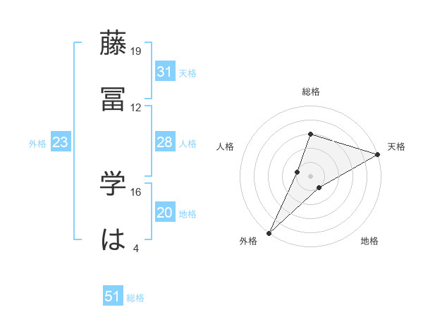 藤冨 学はさんの天格は31画の5点!