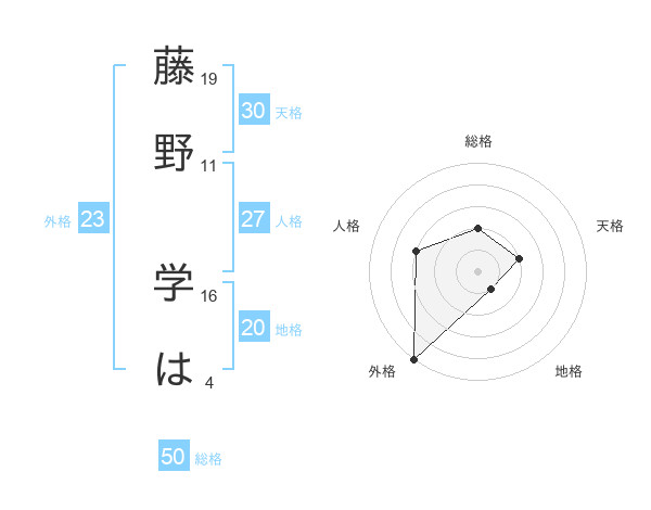 藤野 学はさんの総格は50画の2点!
