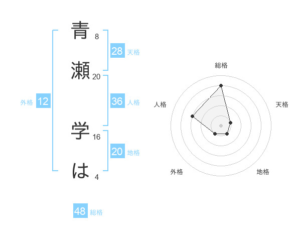 青瀬 学はさんの総格は48画の4点!