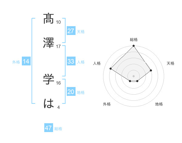 髙澤 学はさんの総格は47画の5点!