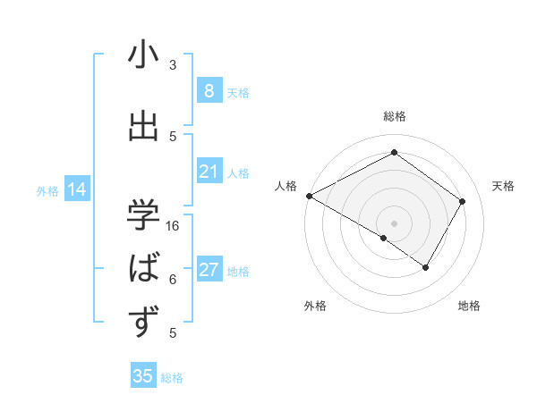 小出 学ばずさんの人格は21画の5点!