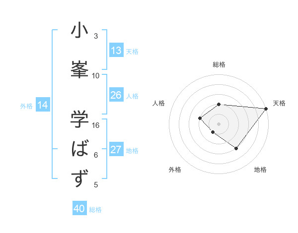 小峯 学ばずさんを姓名の画数から五運を鑑定
