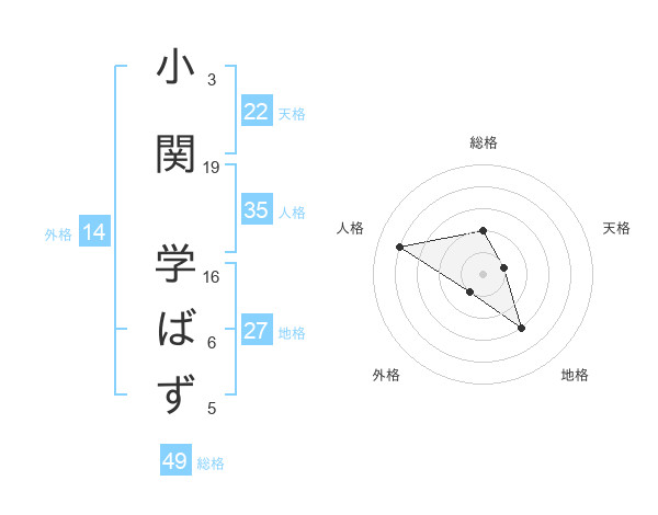 小関 学ばずさんを姓名の画数から五運を鑑定