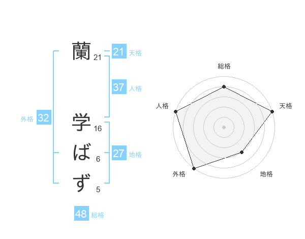 蘭 学ばずさんを姓名の画数から五運を鑑定