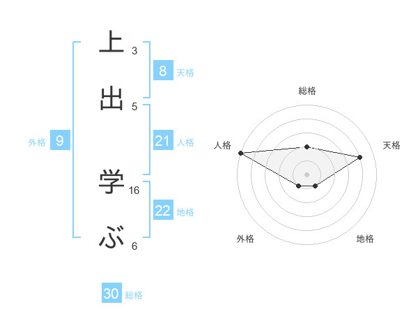 上出 学ぶさんを姓名の画数から五運を鑑定