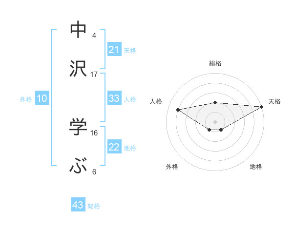 中沢 学ぶさんの総格は43画の2点!