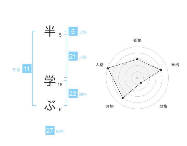半 学ぶさんの地格は22画の1点!